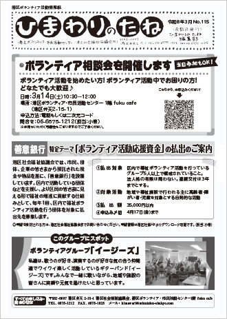 「ボランティア活動情報紙「ひまわりのたね」ボランティア募集中」「ボランティア活動してみませんか?」など。