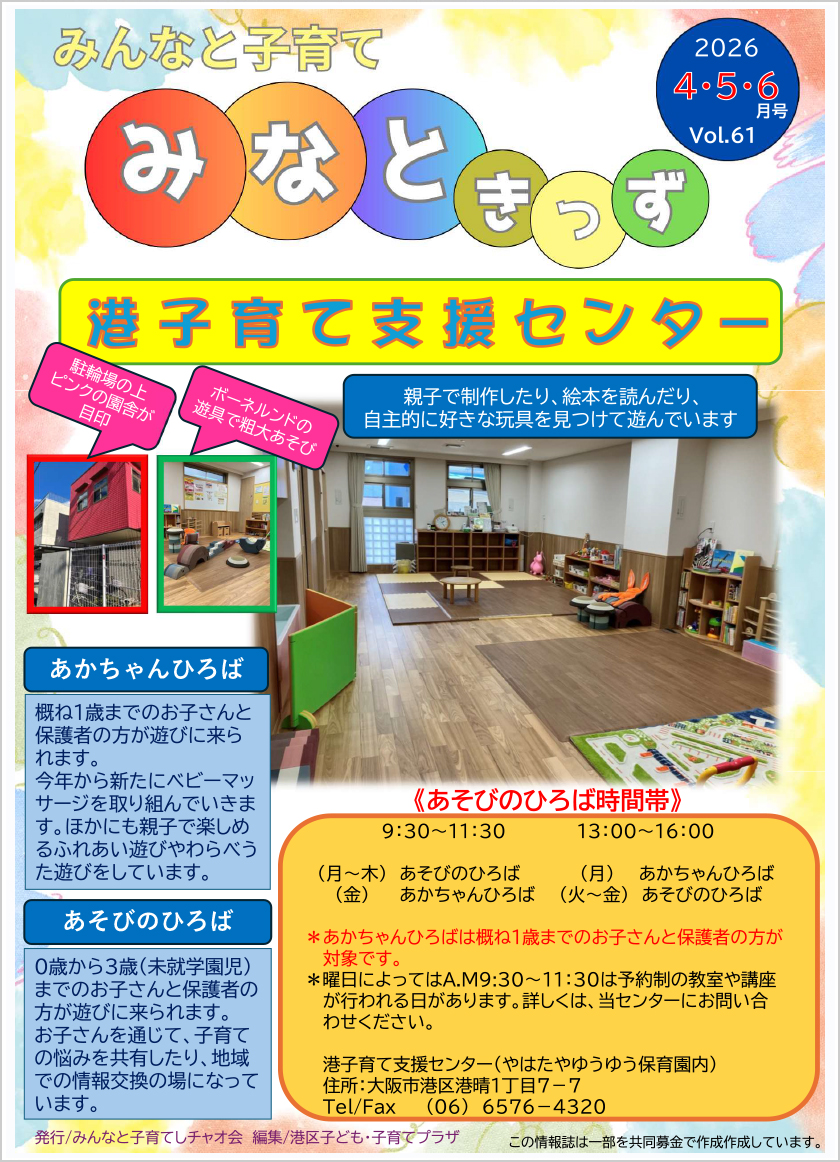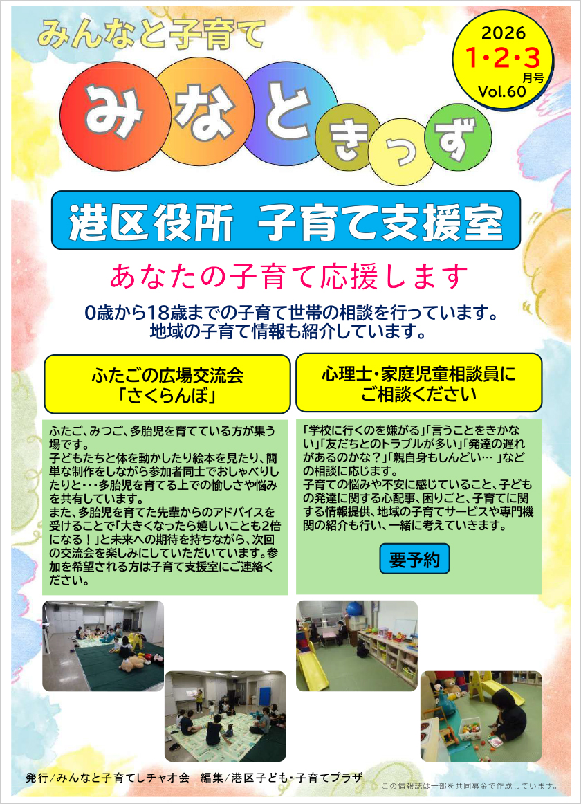 「子育てボランティアさん!」「港子育て支援センター」「港区子ども・子育てプラザ」など。